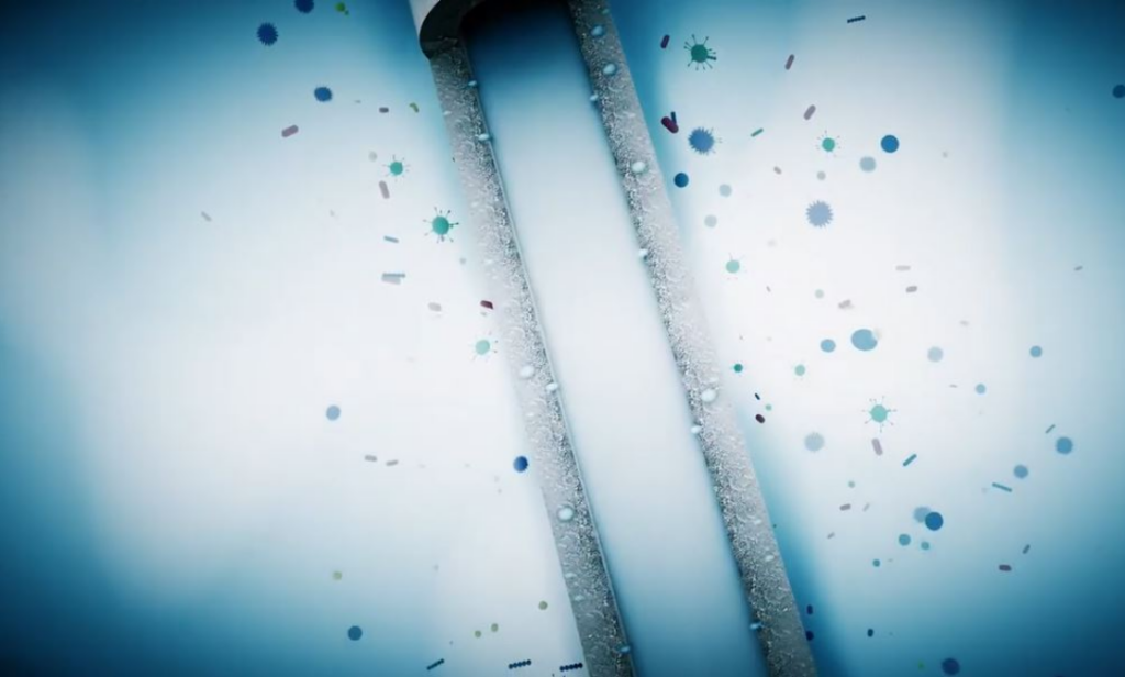 L’eau passe dans des milliers de fibres creuses dont les orifices sont de 0,01 microns soit 1 000 fois inférieur au diamètre d’un cheveu. Les matières en suspension mais surtout les microorganismes(bactéries) et les virus sont parfaitement retenus sur la surface externe des fibres.